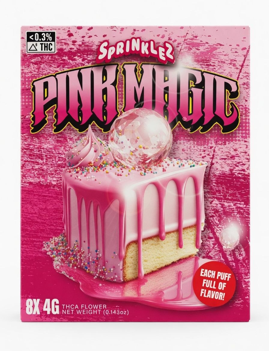 Pink Magic Sprinklez is all about sweet candy flavor and fruity smoothness. From the first bite, you’ll notice vibrant berry-inspired notes followed by soft vanilla sweetness and a creamy finish.